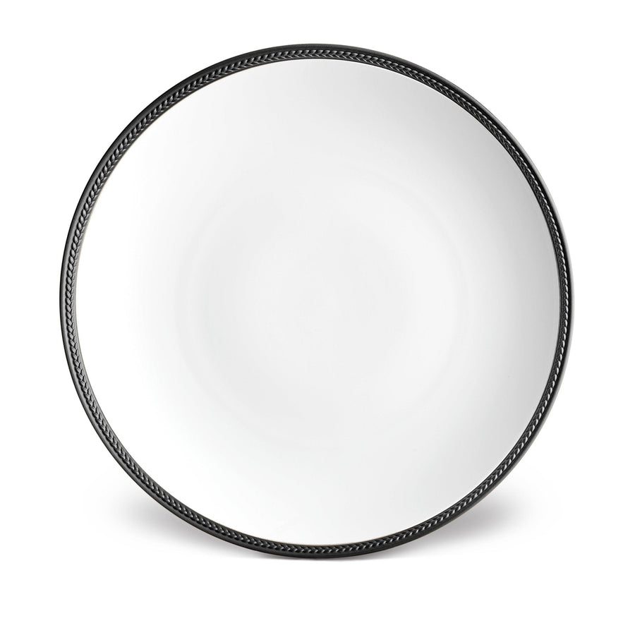 Soie Tresse, French for "Silk Braid," is a modern expression of a timeless classic. Made of porcelain, this charger plate is available in white or with the braids beautifully accentuated in hand-gilded 24K gold, platinum, or black.