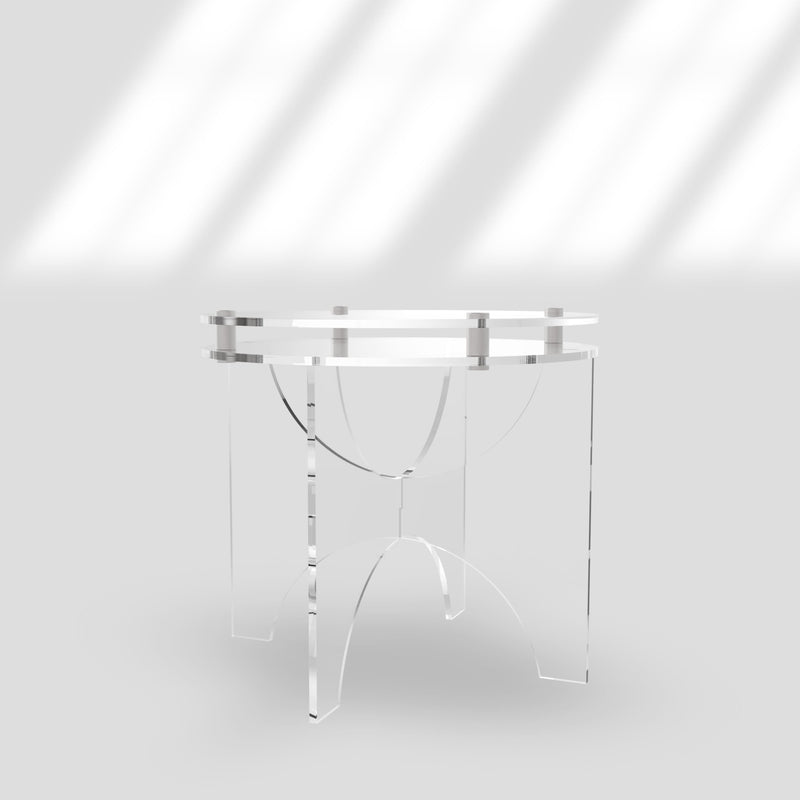 The perfect modern, convenient and prettiest touch for a living room or bedroom. This round accent acrylic table with aluminum standoffs will elevate your space. The idea of this wonderful design was to put a touch of other material into our sophisticated acrylic design making them look more luxurious and cooler. As with all of our designs the S-table was made to be assembled/dissembled (even with standoffs) easily.