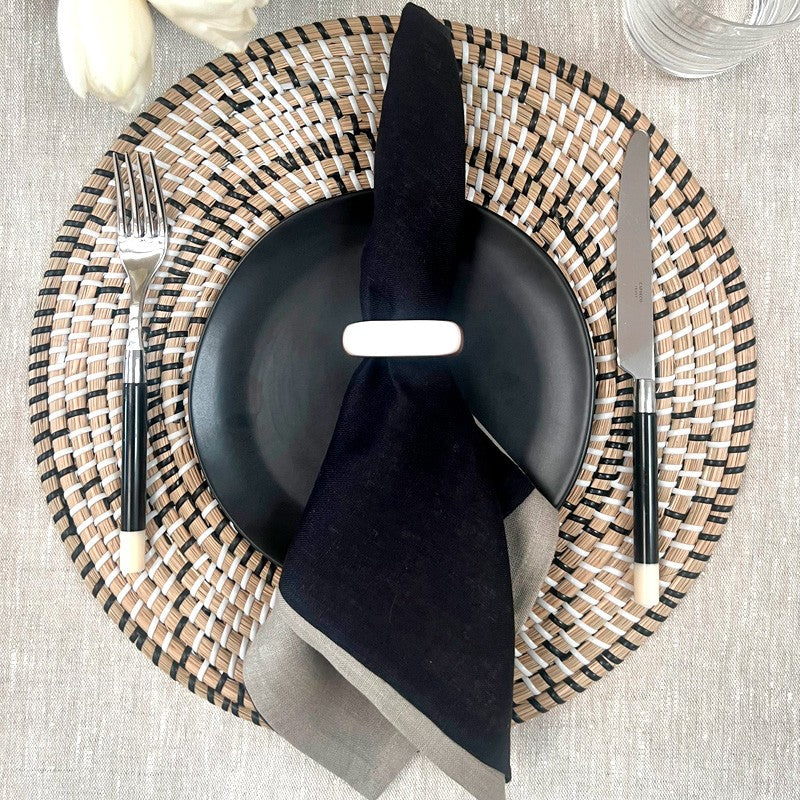 The earthy Terra Placemats are the product of when nature and sophistication meet. An organic seagrass base is interlaced with colored plastic to create a mesmerizingly ethereal pattern. Delicate neutral colors allow these agrestal placemats to seamlessly complement a variety of home decor, from modern to rustic.