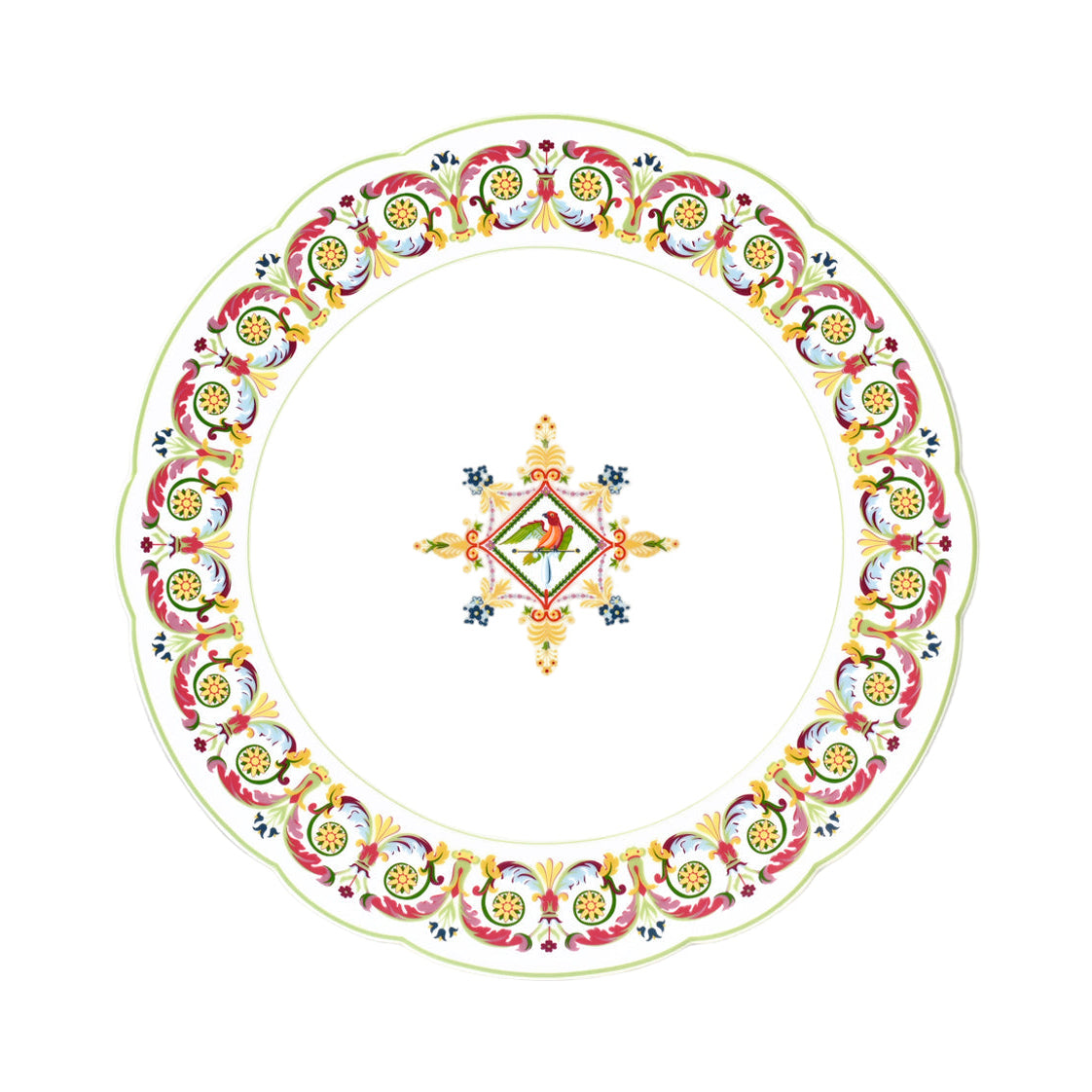 The dinner plate is used to present your main course. It is often placed on the charger.