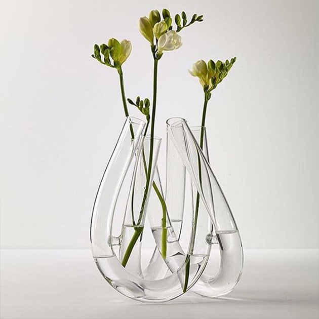 The Triu vases, which are made up of three slimline, U-shaped arms, seem at first glance like intertwined metal tubes.